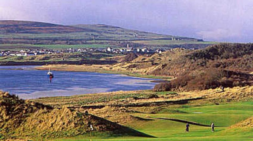 It starts and finishes up by the clubhouse where you’ll find the best views, but the holes that drop gently towards the River Bann form the backbone of the course. It is a tranquil, open setting with gorse scattered about fitfully and water features adding some sparkle.”